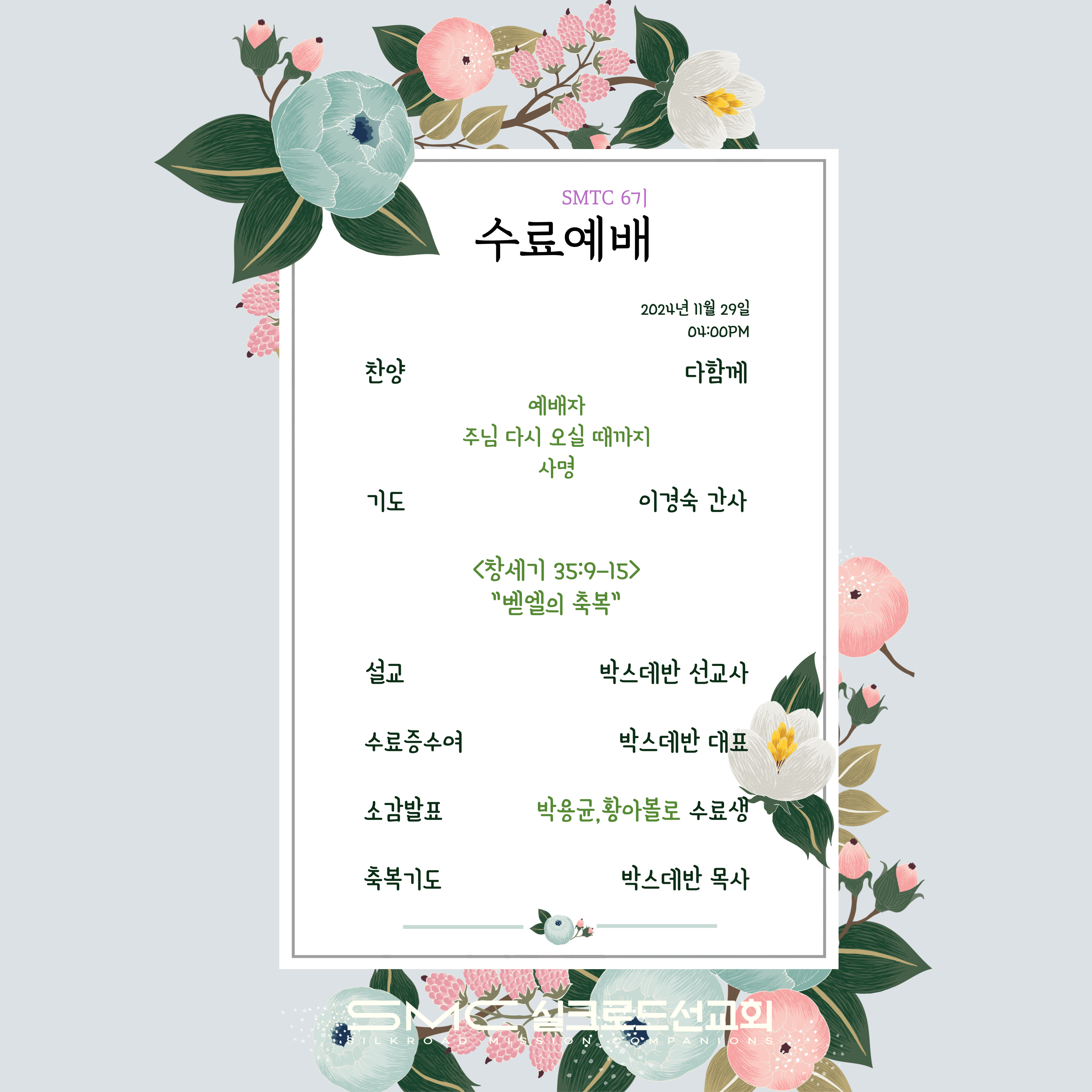 오늘, SMTC 6기 수료 예배가 있었습니다.
